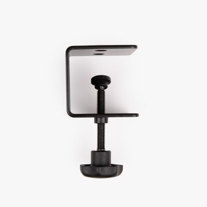 Bureauklem zwart is een robuuste klem in zwarte uitvoering die je gebruikt om banners, displays of accessoires veilig aan tafels, bureaus of andere vlakke randen te bevestigen. De klem biedt een stevige grip zonder het oppervlak te beschadigen, waardoor hij perfect is voor presentaties, evenementen en tijdelijke display-installaties.