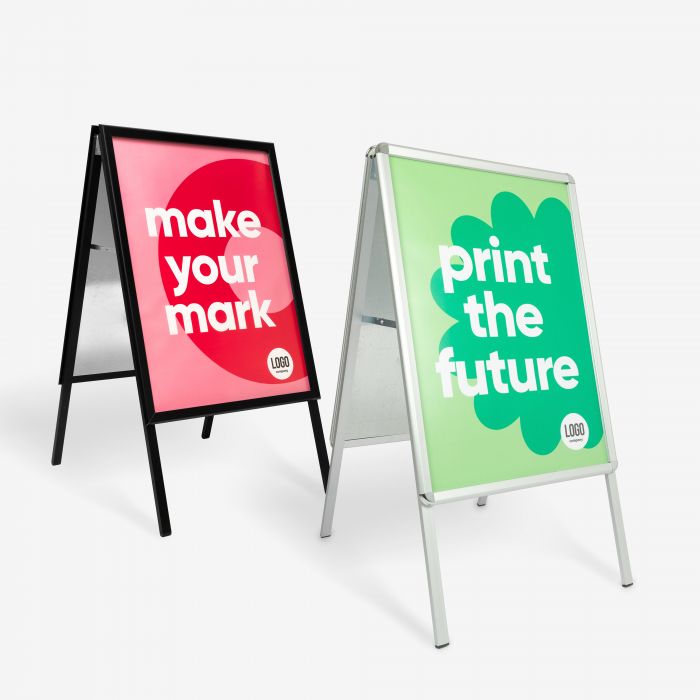 Het Klapbord is een klassiek en flexibel stoepbord waarmee je jouw boodschap snel en effectief onder de aandacht brengt bij voorbijgangers of klanten. Dankzij het lichtgewicht aluminium frame met kunststof elementen is het bord eenvoudig neer te zetten, te verplaatsen en ook bestand tegen spatwater. Je plaatst posters van A1-formaat aan beide zijden van het bord. Dankzij de handige dubbelzijdige kliklijsten kun je de poster eenvoudig verwisselen.